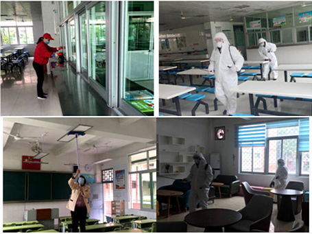 二、布置宣傳陣地 為了讓廣大師大能了解疫情、了解上級的各項要求,后勤組在學校的大門口、宣傳欄等各個地方,布置了大量與疫情相關的宣傳內容,使得疫情防控措施深入人心。 三、做好信息上報 為掌握每位師生員工的身體狀況,后勤組老師每天統計師生的健康狀況,并密切追蹤來自疫區或與疫區回榕人員相接觸的師生情況,做到了解每一位師生、了解每一位師生的健康。 四、進行校園消殺 為營造健康安全的校園環境,后勤組組織相應人員開展了校園大清潔活動,清潔校園的每個角落,并進行消殺工作,以保證師生有個安全的學習生活環境。